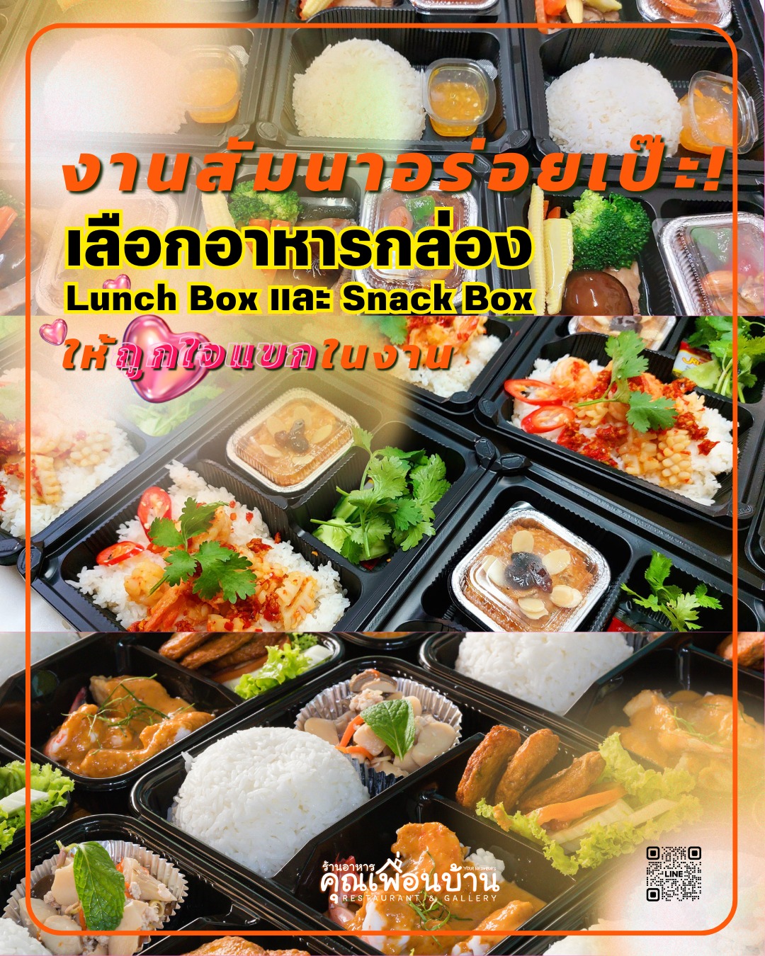 การจัด Lunch Box และ Snack Box ที่ดี จะช่วยให้งานสัมมนาของคุณประสบความสำเร็จ และสร้างความประทับใจให้กับผู้เข้าร่วมงานได้อย่างแน่นอนค่ะ ที่ร้านอาหารคุณเพื่อนบ้าน เรามีบริการจัดอาหารกล่องและ Snack Box ที่หลากหลายตอบโจทย์ทุกความต้องการของคุณค่ะ