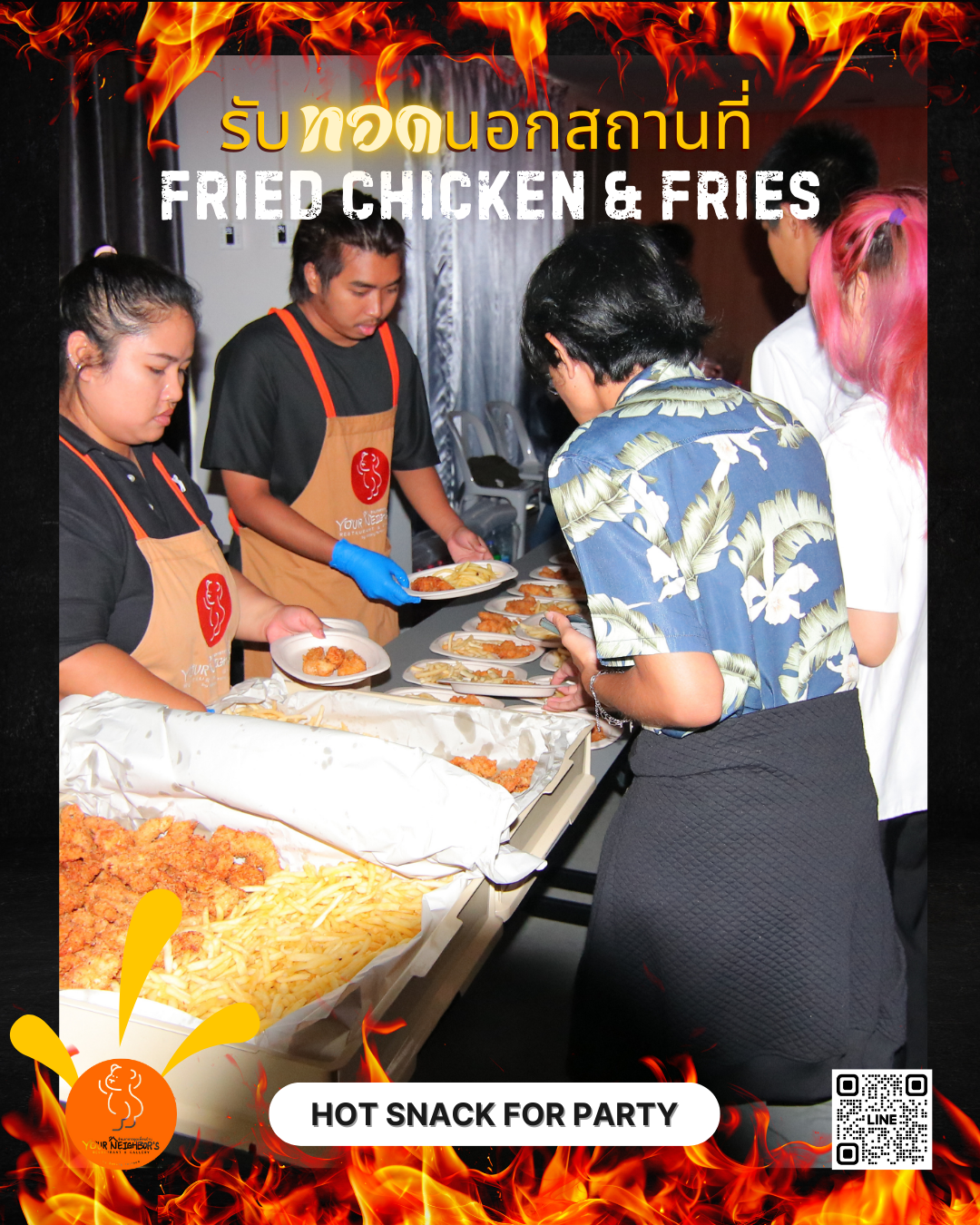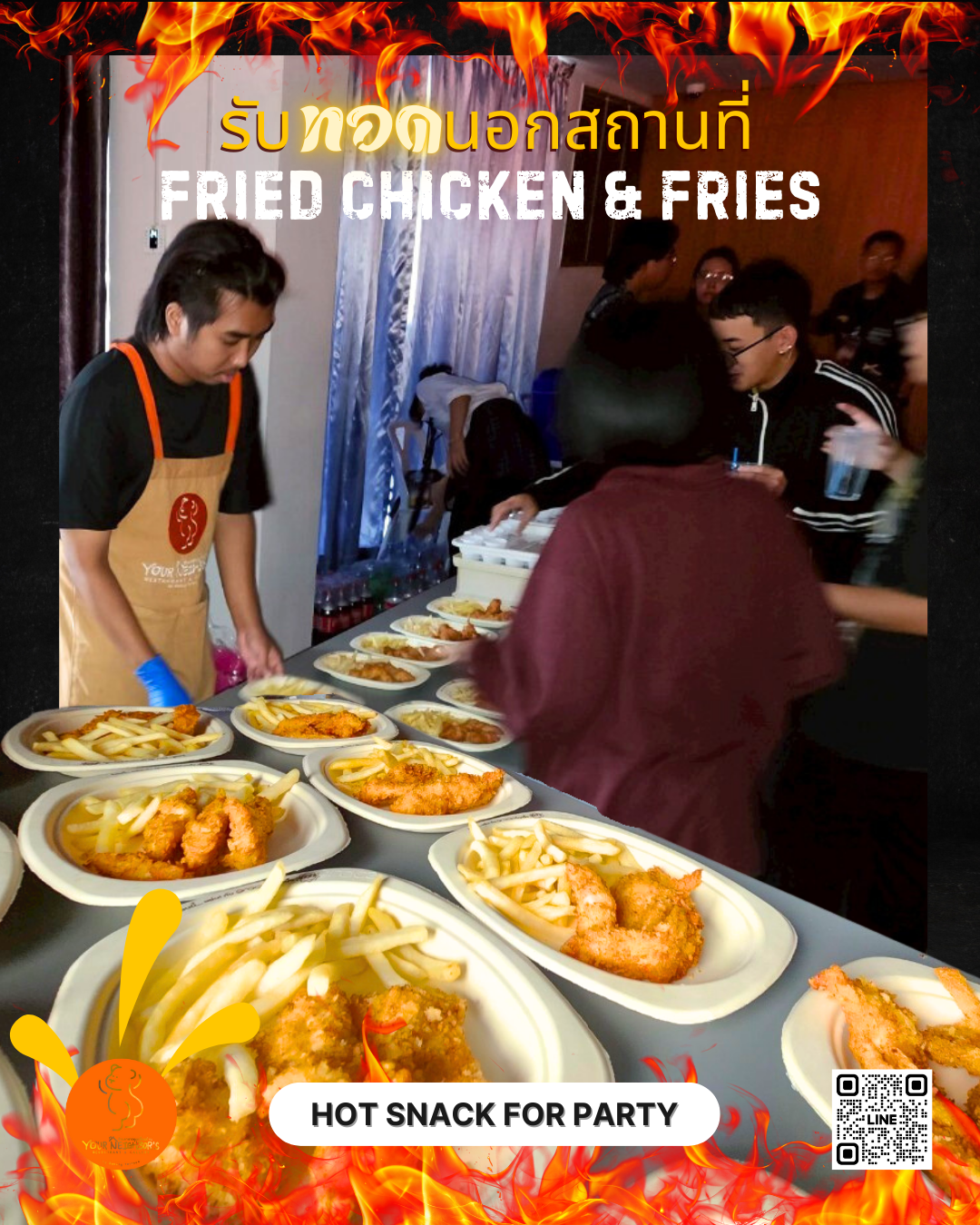 ให้กับปาร์ตี้ของคุณอยู่หรือเปล่า!? มองมาทางนี้ได้! เรามีหลากหลายเมนูทอดและประสบการณ์ในการทำงานอีเว้นท์