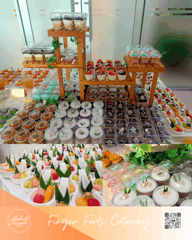Finger Food Catering Service 🥗🍰🥐 ภาพบรรยากและเมนูอาหาร ที่จัดโดย #bakeryterrce #เบเกอร์รี่เทอเรส รายการเมนูทั้งคาวหวาน เซ็ตนี้ ไม่รวมเครื่องดื่ม แต่มีการจัดโต๊ะแขก VIP และการตกแต่งโต๊ะร่วมด้วยสำหรับแขกผู้ใหญ่ สไตล์ไทย ค่ะ