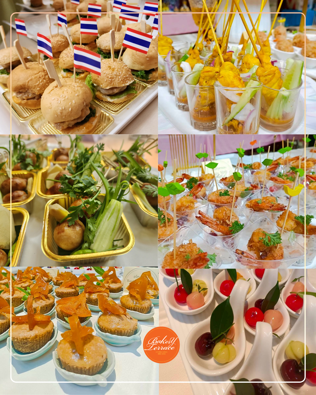 Elegant cocktail food presentation event. จัดอาหารค็อกเทล ศิริราช finger foods หลายเมนู